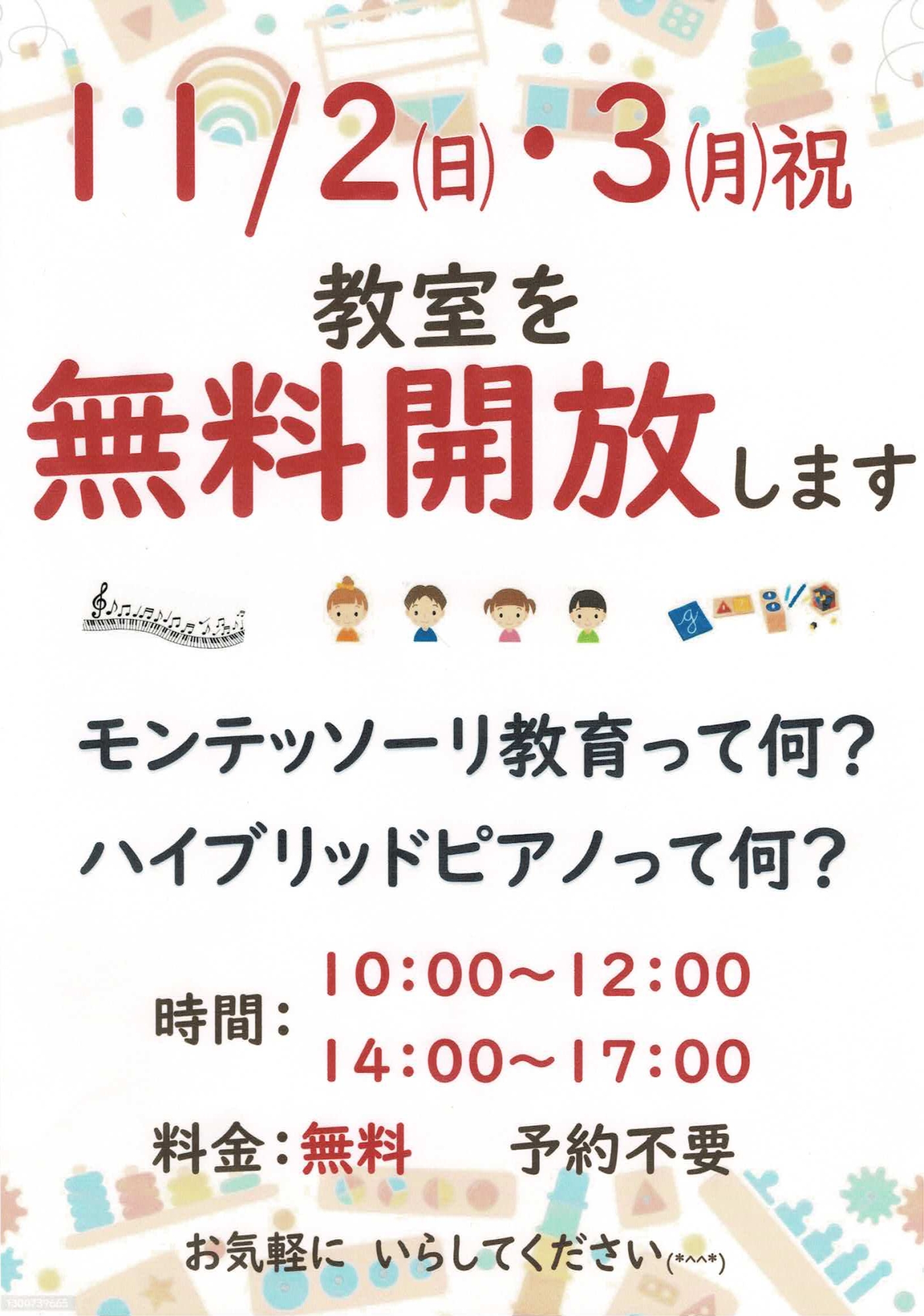 - 2025.11.01 お教室の無料開放をいたします。👇⇓👇⇓